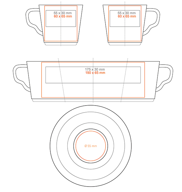 * W przypadku projektów wybiegających poza standardową powierzchnię nadruku prosimy o kontakt z działem handlowym.