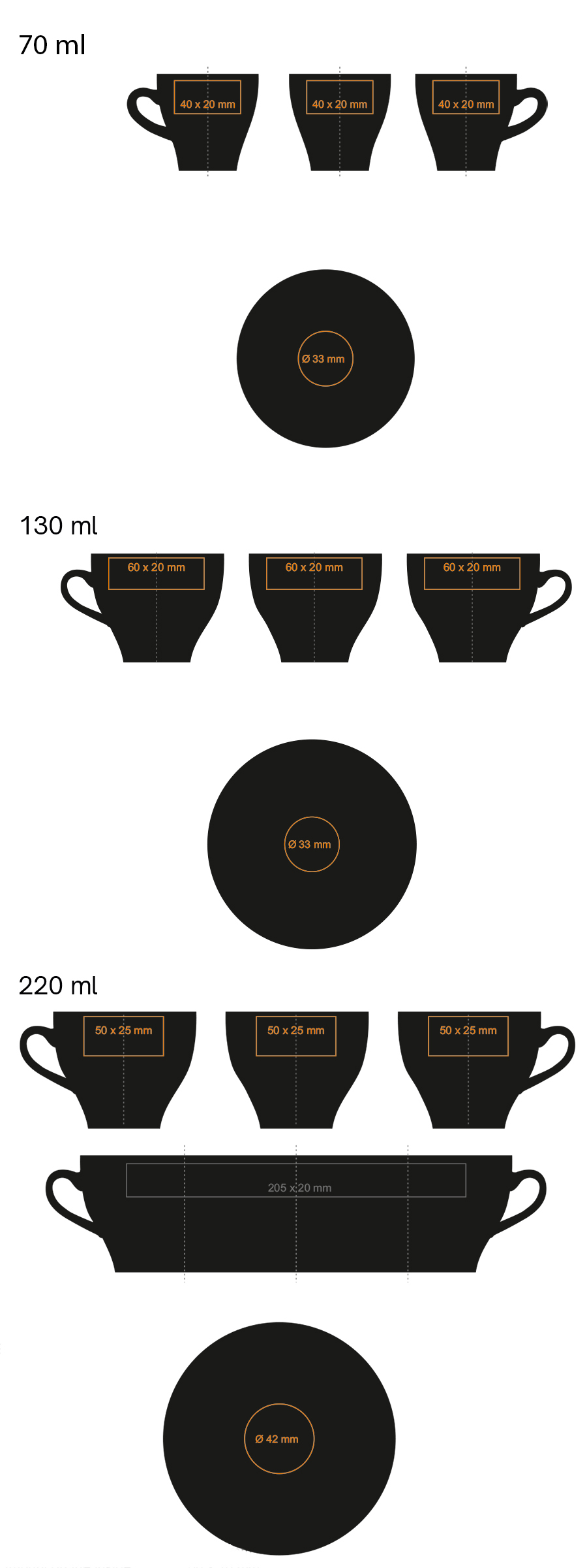 Dostępne techniki zdobienia dla produktu VERONA NERO SET: *  (70 / 130 / 220 ml)