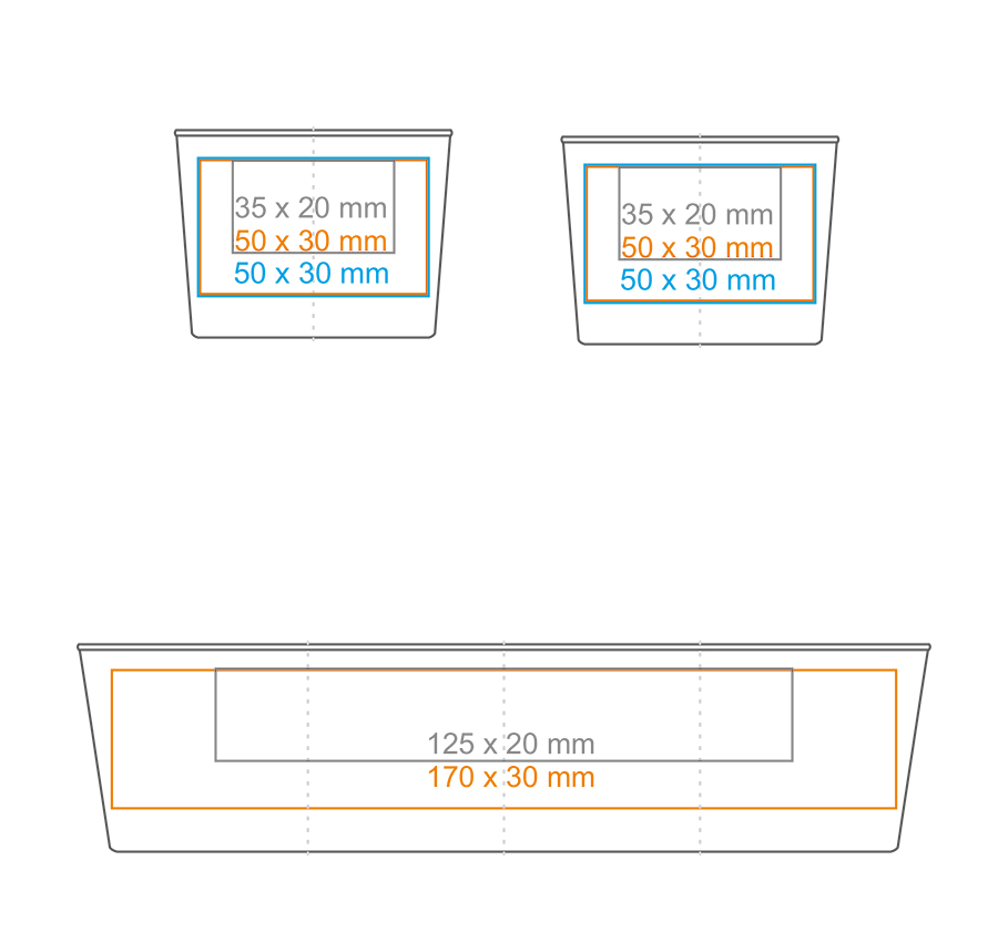 * W przypadku projektów wybiegających poza standardową powierzchnię nadruku prosimy o kontakt z działem handlowym.